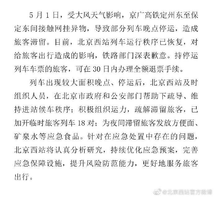北京西站对旅客致歉:持续优化应急预案,完善应急保障设施