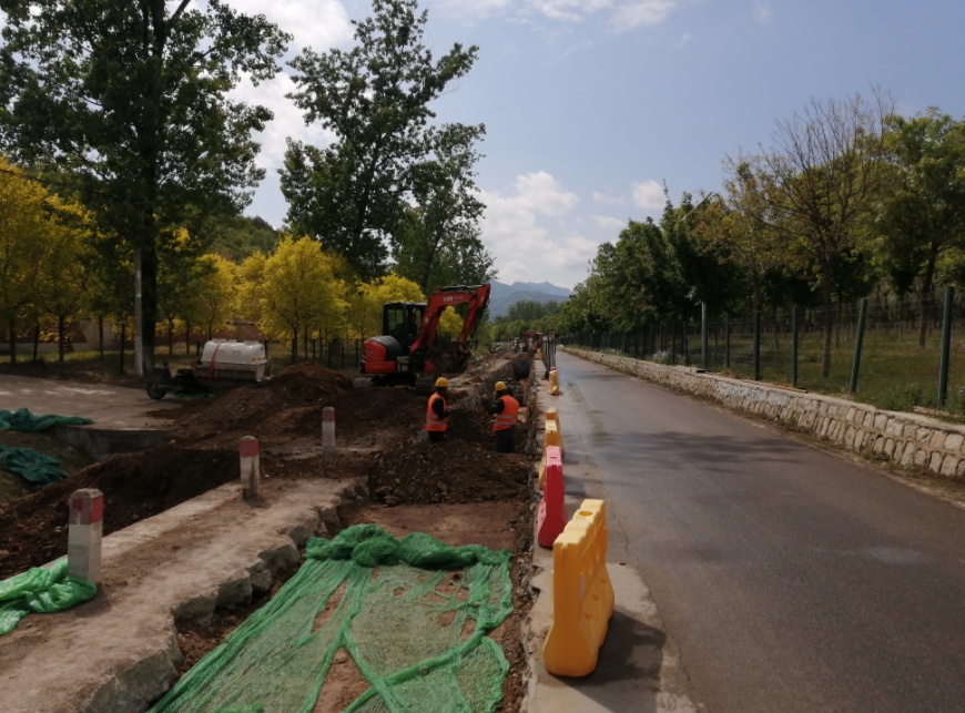 施工过程中,镇里职能科室提前公示封闭路段,做好宣传工作,取得理解,提前放置导向牌,在施工现场危险区域放置锥形桶等设施,组织人员现场疏导车辆,做好施工现场的安全保障工作。