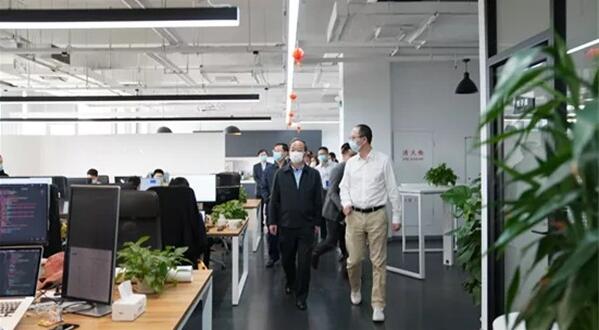 在听取了介绍后,倪耀明书记指出,上海云轴近年来发展很快,创始人及核心团队都来自于优秀的大型研发机构,技术底蕴扎实,本身具有创新优势,因此创业的成功率很高。“让每一家企业都拥有自己的云”这个愿景很好,也是国家大力倡导的“新基建”重要内容之一,作为区里的企业一定要鼓励支持。在谈到营商环境时,倪耀明书记指出,上海云轴地处上海南部科技创新中心核心区,目前区内的交通出行、人才公寓、医疗教育等等配套基础设施已经在规划、实施和建设中,在建的地铁15号线和规划中的23号线将为入驻企业员工提供出行便利,一大批人才公寓将为人才引进和集聚提供保障,知名教育机构和医疗机构也在陆续规划实施。希望上海云轴可以把握好上海南部科技创新中心建设和“新基建”的历史发展机遇,在国产云计算领域做大做强,取得更大的成绩!