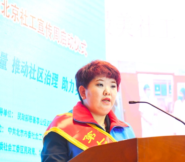 在3月16日“国际社工日”当天,曹红莉作为市委社会工委市民政局评选的“首都最美社工”代表登台发言,分享在参与社区治理等工作中的收获。