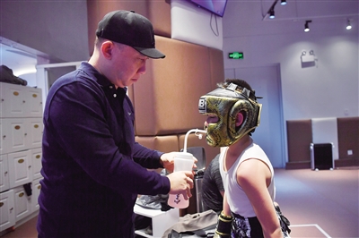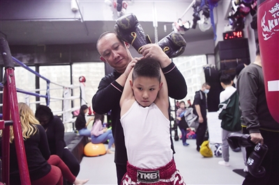 3月13日,朝阳门一家拳馆,实战课刚结束,顺顺的父亲赶忙给儿子补充维生素水。顺顺说,父亲在心里面疼他,但从不表现出来。