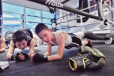 伴随着“嗤嗤”的呼吸声和“砰砰”的击打声,3月份的一个周末,同为十岁的团子和顺顺在朝阳门附近一家拳馆进行着实战课,2分钟一节的训练要持续8回合。