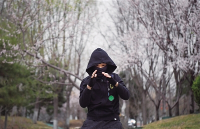 3月17日,顺顺放学后在家边的小公园进行训练。