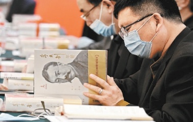 昨天,《李大钊年谱》新书发布会在北京大学举行,与会人员认真阅读新书。 本报记者 和冠欣摄