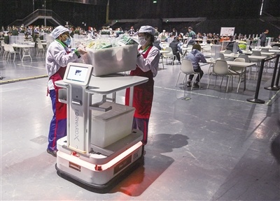 送餐机器人在工作食堂内运行。本版摄影/新京报记者 陶冉