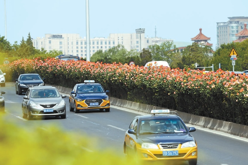 这些天,路经东二环的市民被环路两侧的月季花所吸引。春夏之交,北京的市花——月季进入盛花期,环路、主要联络线及重点街区,2000多万株各类月季盛放,形成长达300公里的“月季项链”,给京城增添了靓丽色彩。