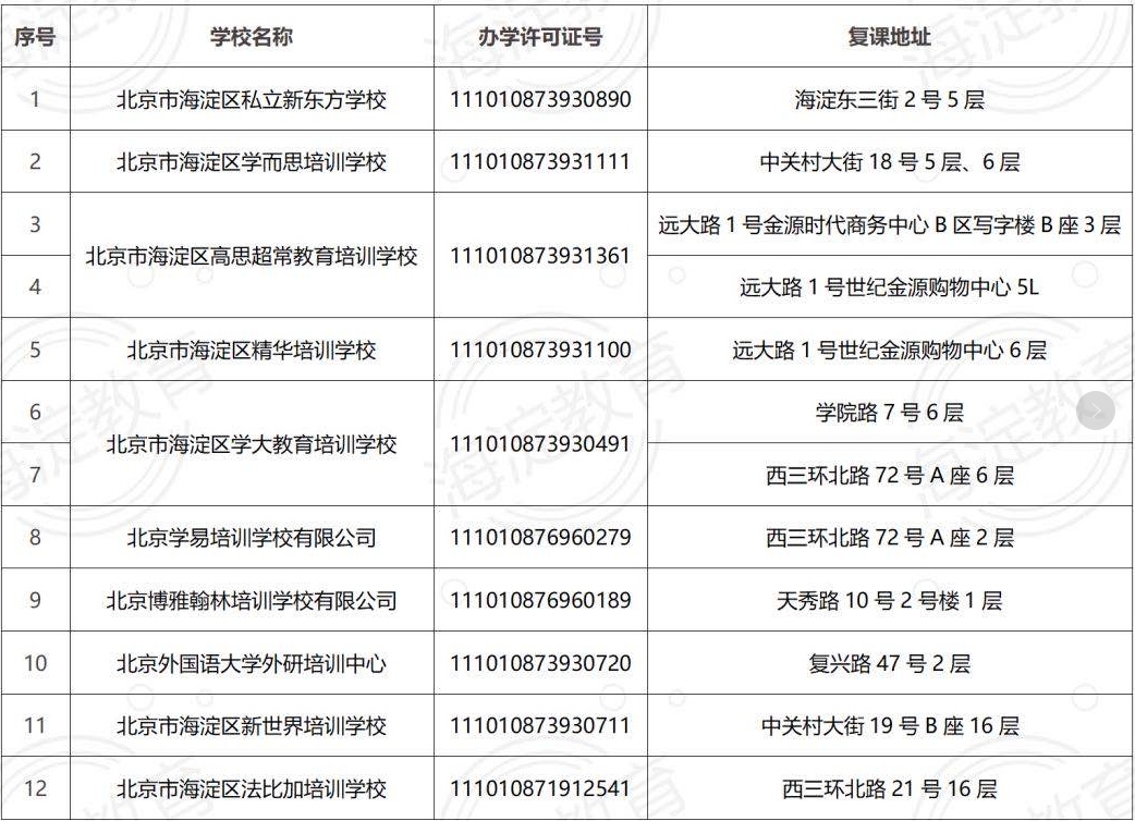 来源标题:第四批!北京海淀区10家机构的12个教学点恢复线下培训