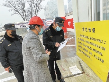 昨天上午,市城管执法局执法总队联动石景山区苹果园街道综合行政执法队,对施工工地落实空气重污染黄色预警情况开展了专项执法检查。