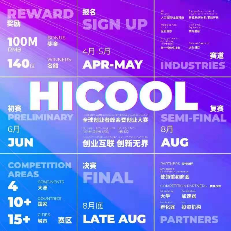 2021年的HICOOL是值得被期待的,这场精彩无限的全球创业人才交流盛典将在4月16日于北京顺义举行的启动仪式上惊艳亮相,届时HICOOL将在全球创业者的共同见证之下,一起回顾过往,畅想未来,迎接未知的挑战,开启全新的征程。启动仪式不仅设置了丰富充实的内场活动,还在仪式外场精心布置了多个主题展区。激动人心的启动环节、行业大咖奉献的顶级思想盛宴、2020优秀获奖项目的动情分享、多个重量级的合作签约和全球发布。HICOOL启航于北京,驶向的是国际创业领域广阔的蓝海,在这艘搭载梦想的航母上,衷心欢迎全球伙伴的结伴同行。