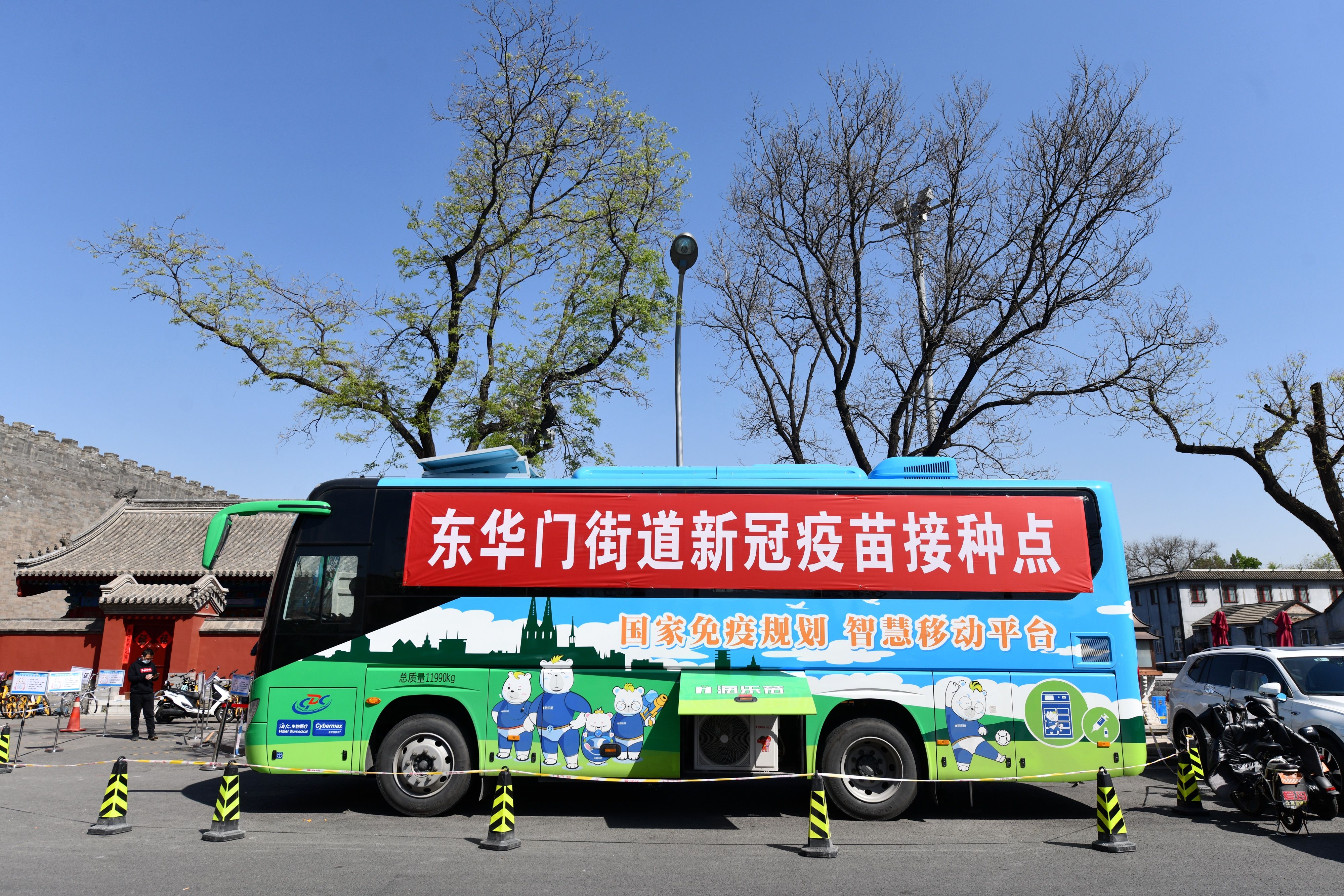 4月14日上午,故宫东华门外,一辆疫苗接种大巴车吸引了不少人的目光,留观区则设在筒子河边,蓝天白云红墙倒影,堪称北京最美“留观区”。