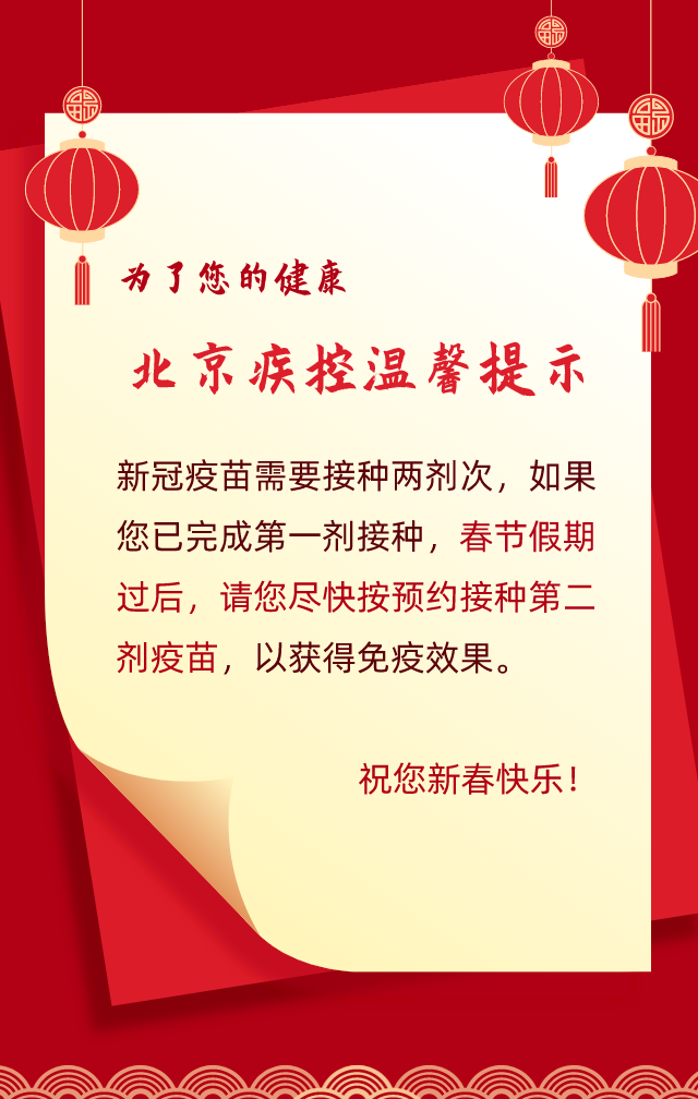 据北京市疾控中心微信公众号消息,北京疾控温馨提示:接种第一剂新冠疫苗后,春节假期过后,请尽快按预约接种第二剂疫苗,以获得免疫效果。