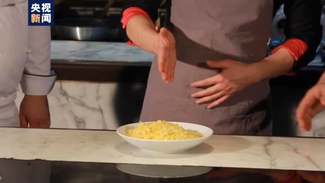 总台央视记者 何畅:现在就到了最终的品尝环节了,刘大厨的炸春卷和杨大厨的意大利面配奶油蘑菇汁,两道菜分别代表了中西不同的文化,真要说比较还真就不好比。要想分出胜负,还得看我露一手非常国际化的名菜,经典名言要来喽,“最新鲜的食材往往只需要最朴素的烹饪方式”。