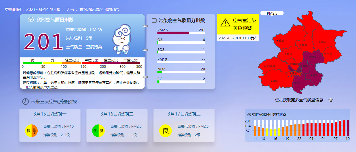 据北京环境监测中心网站消息,截至14日10时,北京市空气质量指数为201,污染级别为5级,已达重度污染标准。