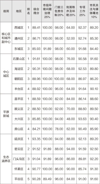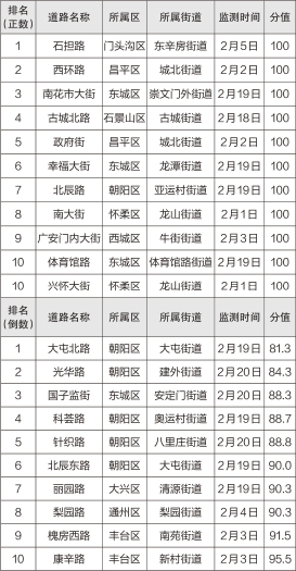 2月份现场检查问题点位112处(每区7处),其中整治达标108处,不达标4处(分别位于东城区交道口街道、门头沟区东辛房街道、平谷区兴谷街道、密云区溪翁庄镇各1处)。同时从地面、立面、空间三个维度,全方位、多角度在2月份检查沿途发现环境建设管理问题161处。经综合计分,各区得分和排名见下表。